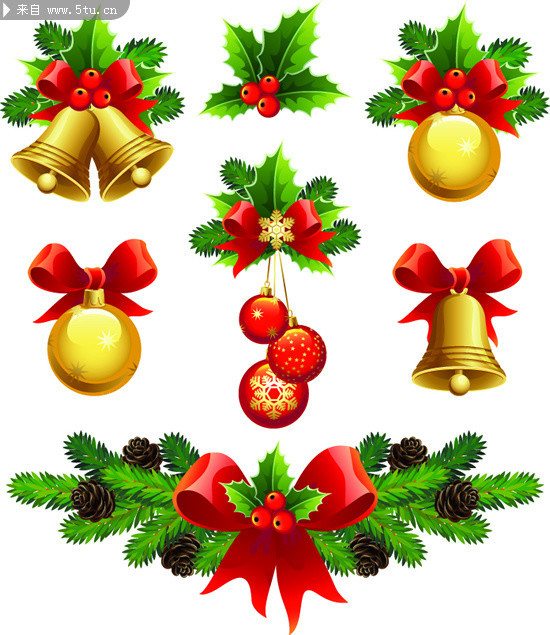 【描 述】圣诞礼物与金色铃铛相关内容,图中包含松枝、蝴蝶结,类似主题有2011年圣诞素材等。