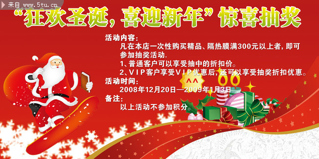 【描 述】圣诞老人与红飘带相关内容,图中包含PSD素材,类似主题有礼物等。