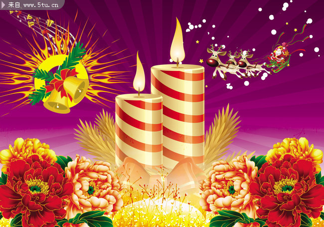 【描 述】烛光与铃铛相关内容,图中包含喜庆、紫色背景、牡丹花,类似主题有PSD等。