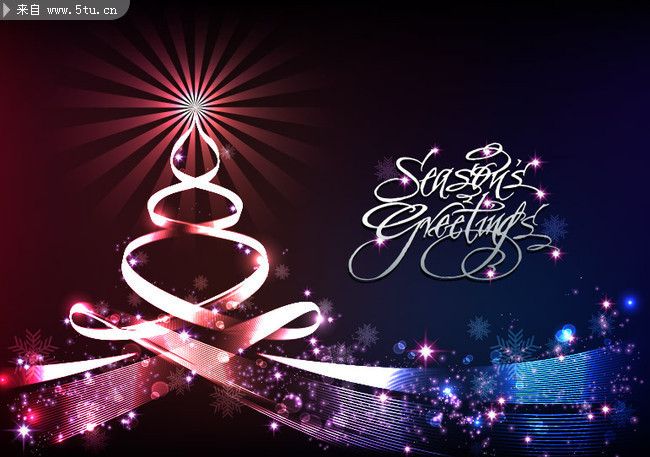 【描 述】抽象圣诞树与圣诞英文艺术字相关内容,图中包含飘带、闪闪发光、星光、光芒四射、彩色背景,类似主题有圣诞节矢量素材等。
