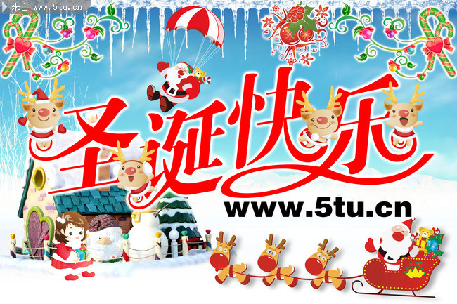 【描 述】圣诞海报与圣诞节图片相关内容,图中包含圣诞屋、圣诞老人与鹿,类似主题有圣诞节吊旗等。